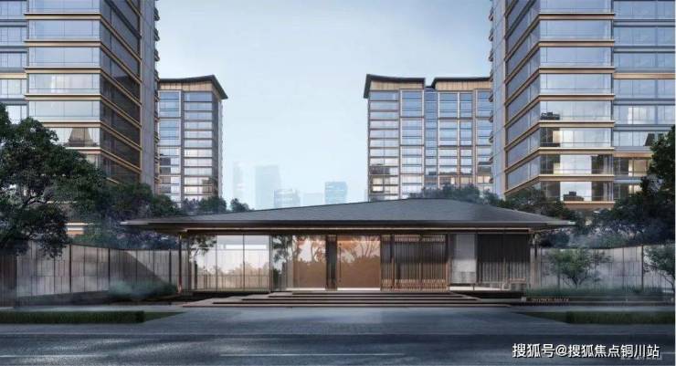 ◆现代立面:以大面积玻璃、香槟色装饰线条打造深灰色质感外立面,构建匠心美学范本。