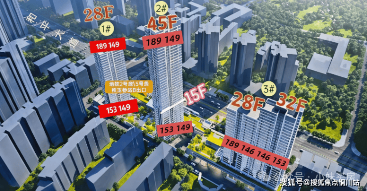 项目共规划3栋住宅,1号楼是1个单元,总高28层;2号楼也是1个单元,总高45层;3号楼:2个单元,总高分别为28层、32层。