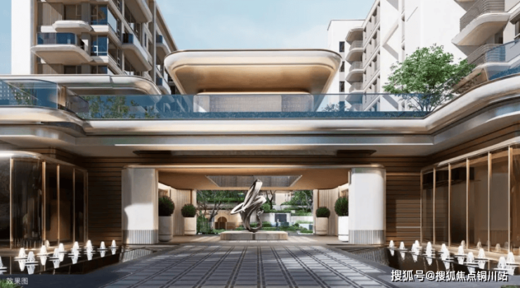 从效果图看,外立面典型的四代宅特征,户户带露台,窗墙比较高配大面积玻璃幕墙,加之香槟金金属线条勾勒,颜值很高。