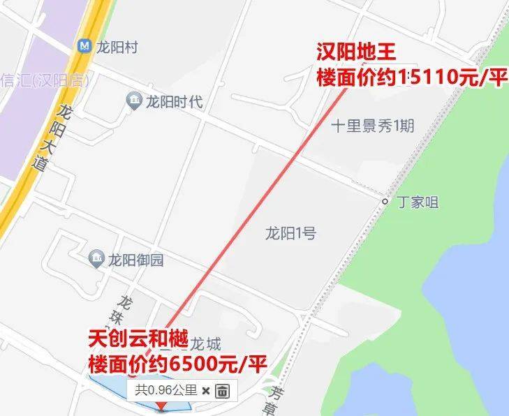 而仅仅1公里不到的汉阳地王,楼面价约15110元/平,天创云和樾的楼面价,连隔壁一半都不到!