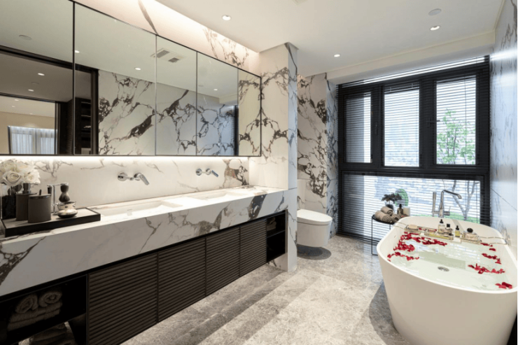 主卧套房的弗洛伦萨灰大理石地面,吞噬了最后一分贝城市噪音。