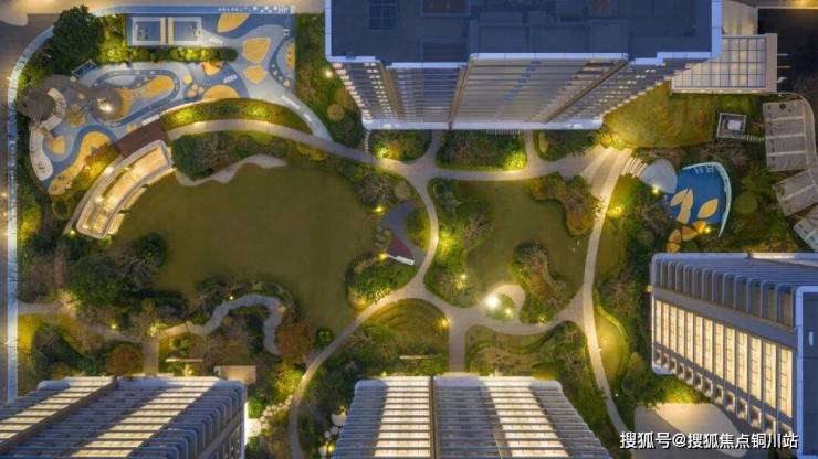 继续步行向内,以“生命之树”为核的园林体系已然成型,绿意随处可见。中央约2800㎡的景观组团犹如小区的“天然客厅”,草坪柔软厚实,四周花木繁盛,孩子们围绕在一起嬉笑打闹,最动人的生活图景就这样徐徐展开。