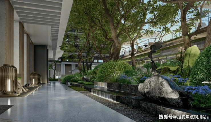 秉承对自然的尊重,依循台地式景观设计,匠造立体化园林景观,搭配酒店式归家大堂、全天候风雨连廊、开放式架空层,让往来世界之人可在此驻足凝望、寻谧于心。