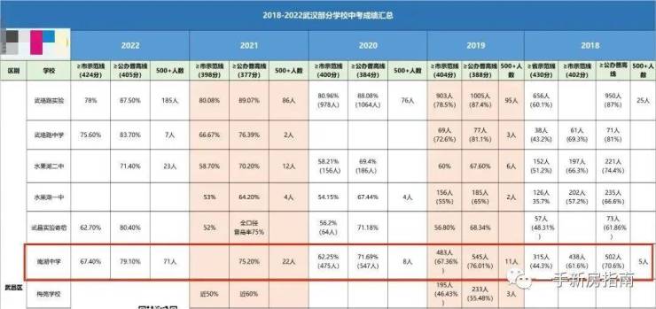 南湖中学作为全市最优质的公办初中,先后荣获“湖北省中小学综合实力100强”“湖北省科普示范学校”“武汉市中小学校园文化建设先进学校”等光荣称号。2022年普高率79.1%,示范率67.4%,中考成绩综合排名位列武汉市年度评级榜第12名;省实验等高中给予南湖中学的分配生名额高达169人,高额的分配生占比,被誉为省实验的后花园。