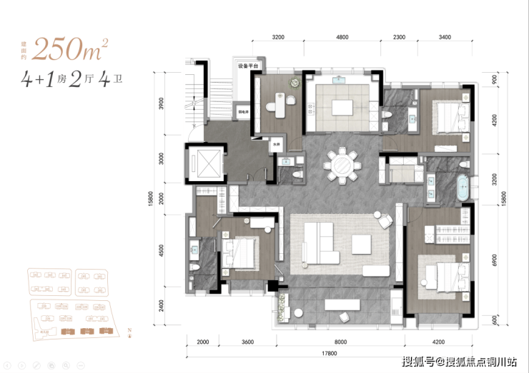 不仅如此,在建面约250㎡的户型中,还规划有一个进深约2.4m的超尺度阳台,拥有270度超广角视野,妥妥的私人“空中庭院”,生活的场域感油然而生。