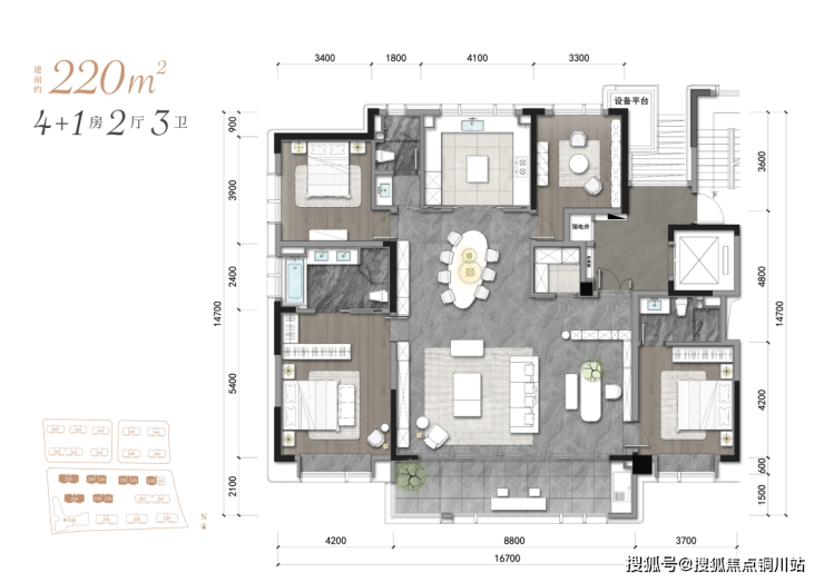 即便是建面约165㎡的户型,也以“高阶享受型”为起点做设定:享受型大三房,带来面宽超7米的大横厅尺度,满足多元、个性的志趣空间需求;并且带来足够的空间尺度,北向客卧尺度达到了约3.6m进深,厨房面宽更是达到了约3.6m媲美酒店星厨;为了更为舒适的居住体验,每个户型都配备了独立储藏室,足以满足家庭日常的收纳需求。