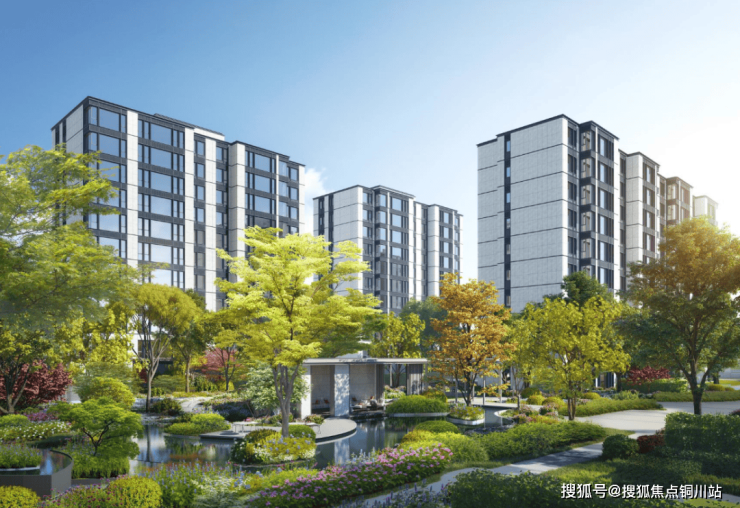 北面的两个地块采用“围合型中庭”设计,西北侧组团全部规划为建面约165㎡,东北面组团清一色建面约185㎡,一条横向景观带贯穿其中,通过镜面水景与定制艺术品、景墙的辉映,营造移步异景的独特视觉体验。