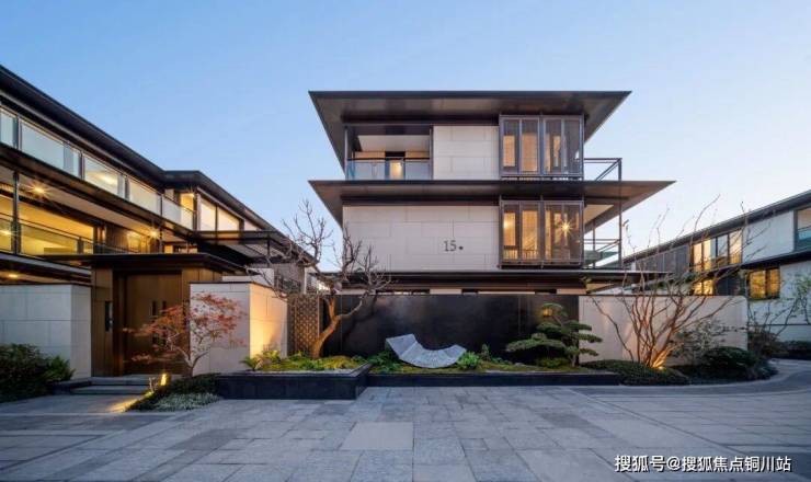 合院建筑采用单檐歇山顶,坡度平缓、端庄大气,檐口平直且层层出挑,层间出檐深远,不仅强化了整体的水平延展感,也营造出沉稳而内敛的现代东方建筑气质。建筑整体呈现出极强的线条感、水平感与精致感,通过比例严谨的体量组合与细腻的材质处理,传递出对传统营造精神的当代回应。