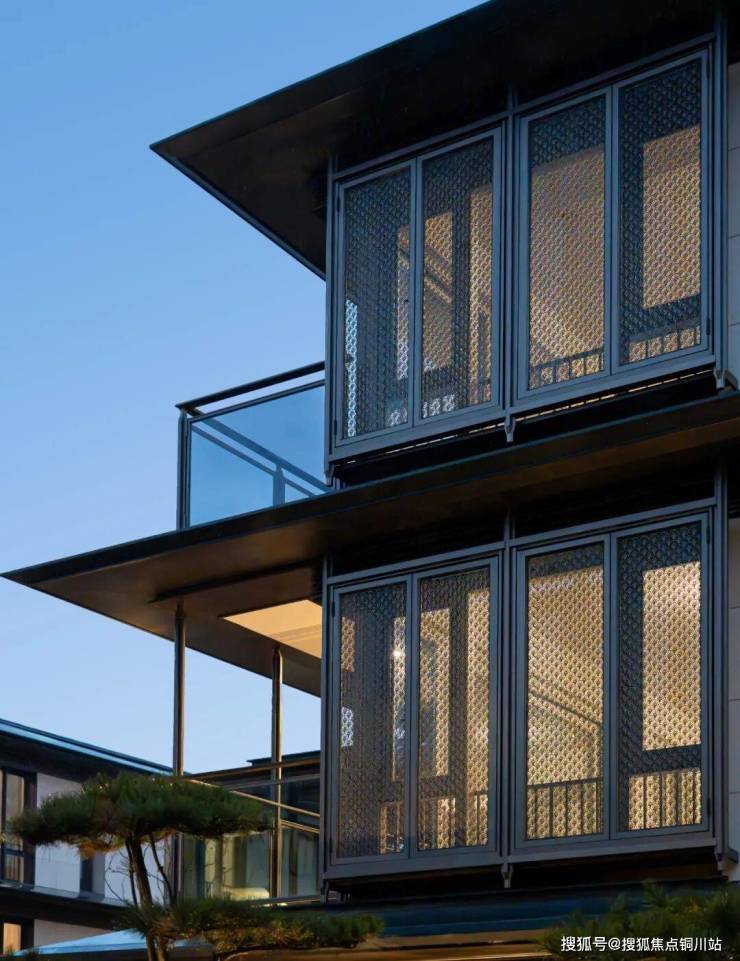 设计中巧妙融入“风翎”符号——这一新颖别致的视觉元素,既源于自然意象,又经过抽象提炼,成为贯穿项目的重要标志性语言,赋予建筑独特的识别性与文化隐喻。在细部处理上,建筑师深入研究宋式建筑语汇,将传统檐下的擗帘竿、挂落与色勾阑等构件进行系统性提炼与简化,去除繁复纹样,保留其结构逻辑与比例关系,并以现代材料与工艺重新诠释,形成兼具古典韵味与当代审美的新中式构件体系。