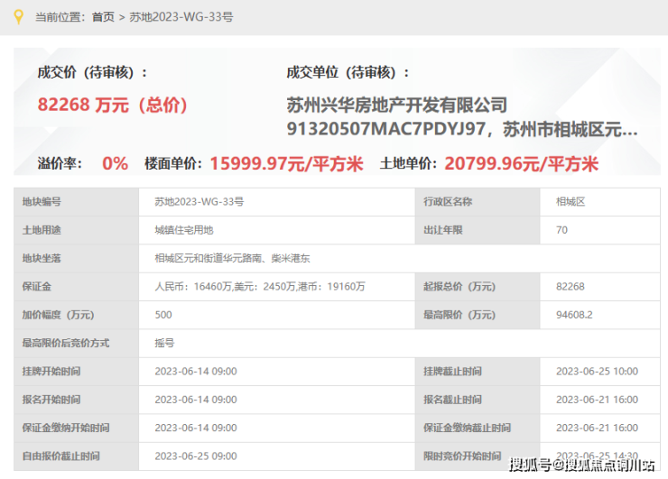 五潨泾锦院,即,苏地2023-WG-33号地块,位于相城区元和街道华元路南、柴米港东,是2023年6月25日,兴华房地产&元和房地产以底价82268万元竞得,成交楼面价16000元/平。