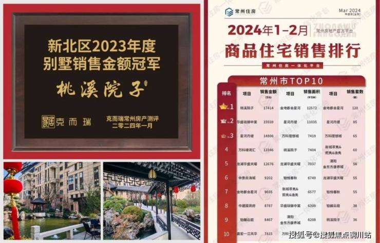 2024年2月,桃溪院子再次荣获1-2月常州住宅销售榜金额TOP1。