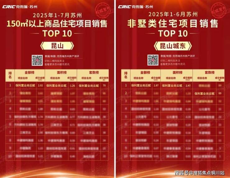 第一,2025年1-7月,昆山全市150㎡以上新房共计成交797套,保利·尚云赋一个项目成交70套,市占率9%左右,昆山第一。