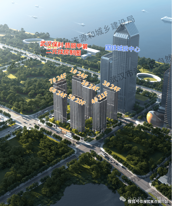 武汉保利·翡丽甲第规划由7栋住宅组成,楼栋总高为20-21-24F,住宅高度均低于80米,两梯两户设计。