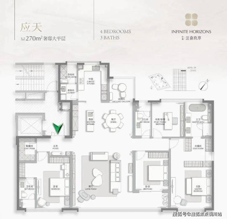 中海·江南玖序规划打造10栋23-24层高层住宅,共432套房,主力户型建面约200-385㎡,整体围合式布局,呈现出南北纵向约200米的超大中庭。