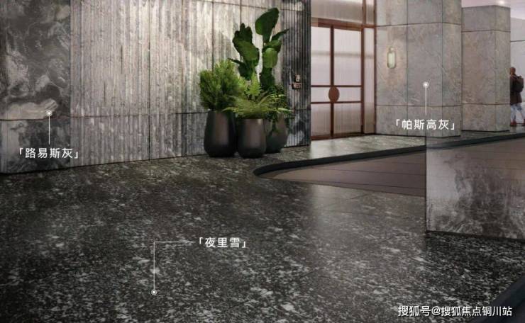 恒隆府入户大堂很是惊艳,地面和墙面选择“夜里雪”、“帕斯高灰”、“路易斯灰”等名贵奢石,大堂内则大面积采用巴西“极品鱼肚灰”,每一块石材都经过精心的挑选与切割,纹理自然而独特。