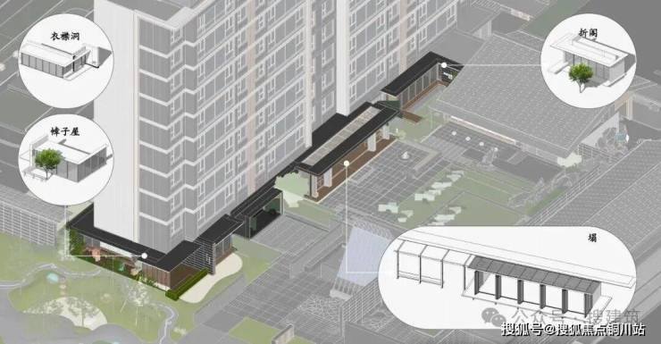 「古建切片」的当代转译:折阁、塌、衣襟洞、幛子屋等古建空间切片,在架空层中嵌套为一个连续而丰富的界面关系;