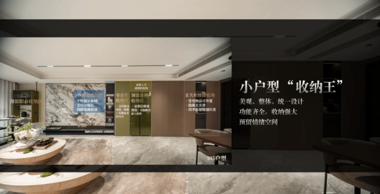其中,建面约103㎡户型堪称“收纳王”,兼具颜值和功能。