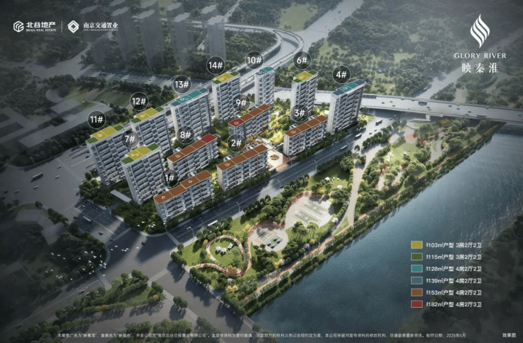 由杭派精工北谷地产操盘,1.8容积率,打造13栋8-10F洋房、17-18F小高层住宅,是目前南京唯一真正秦淮河畔的低密四代洋房。