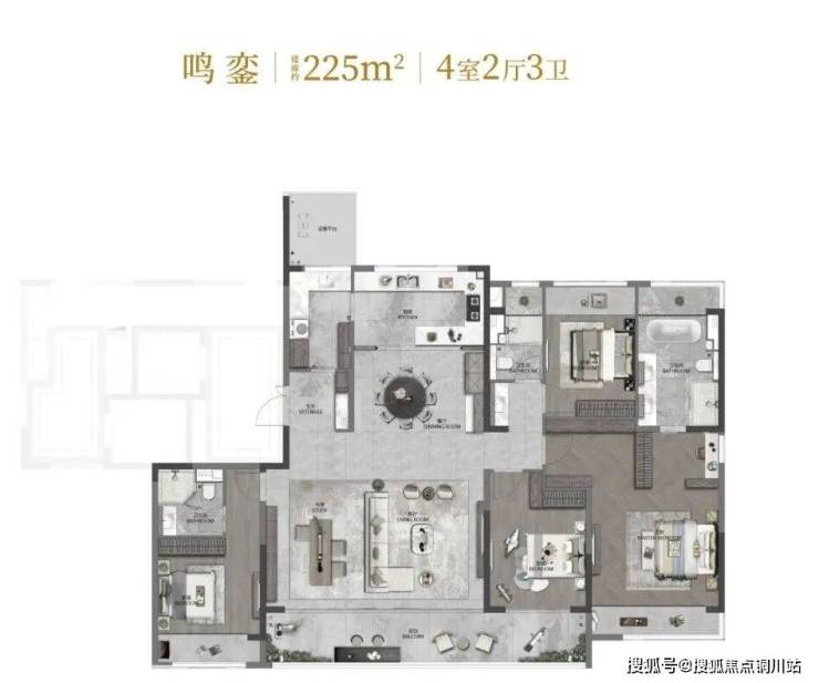 约18米南向巨幕观景面,约10.5米跑道式双联阳台,约70㎡LDKB一体化社交中枢以及超40㎡酒店式主卧套房,别墅相媲美的尊崇气度,让约225平米超级大平层成为终极改善客户置业清单上的必选项。