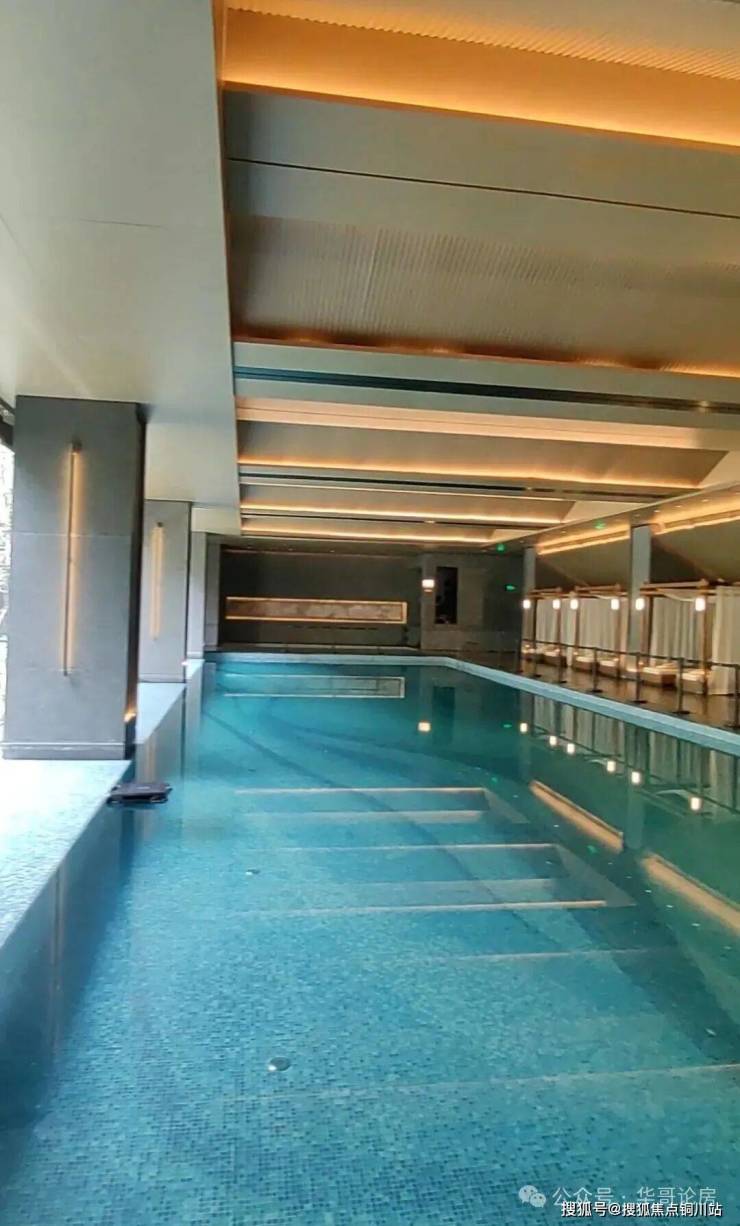 小区中间是下沉式的庭院,围绕周边的是会所,包含了恒温游泳池、健身房、私宴会客厅等,这种格局在目前的楼盘中比较流行。