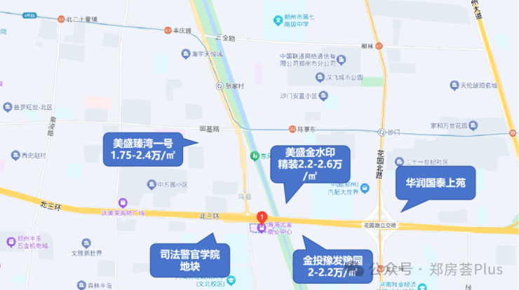 目前有美盛金水印、臻湾一品、豫发豫园,接下来有司法警官学院地块和华润国泰上苑。