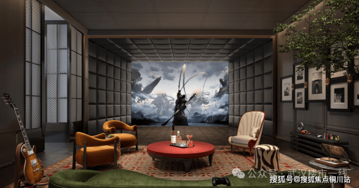 再看功能配置方面,不仅有健身房等常规功能,还有私宴厅、影音室、书吧等高级功能空间。