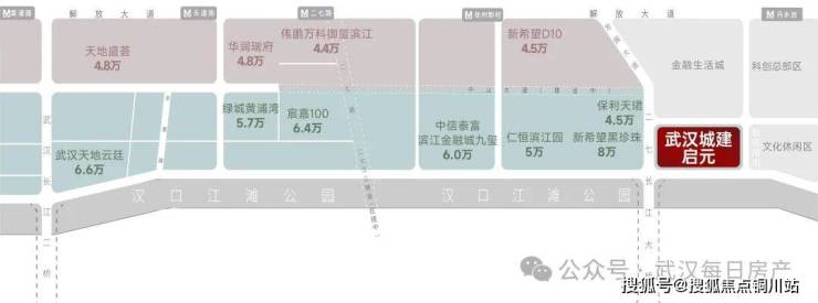4.该楼盘虽然一线临江,但是门口的江滩公园还未开发,相当于是野生江景。项目北边是铁路,西边是二环线,南边是江北快速路,三面夹击,噪音不容忽视。距离启元1千米不到的武汉城建旗下另外一个楼盘滨江云城,单价1.5万左右,武汉城建启元价格翻一倍,客户接受度有待商榷。