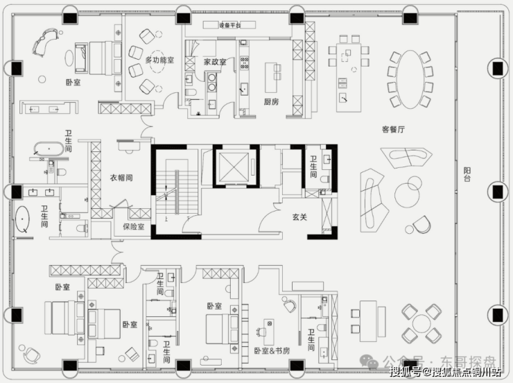 你看了下面这个650平米楼王户型的户型图,你就明白他有多么顶奢了。