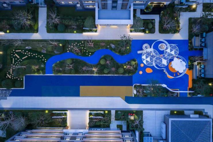 更绝的是第五立面,玖阅的建筑屋顶全部以同色系环氧地坪装饰,形成了美学视觉上的统一和谐。超越图纸的兑现背后,正是中信泰富地产精益求精、不计投入的匠心和诚意。