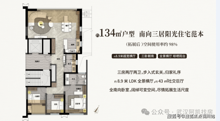 建面约 134-191 m²全大户型配置,2T2户纯板式结构,择邻而居,业主圈层品质与汉口、武昌滨江顶级豪宅形成价值对位
