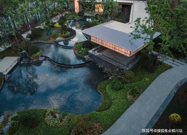 从园林景观看:项目汲取千年书院形制、雅集,打造两轴叠三院、两巷藏六景的东方书院奢宅,营造出“有山水、有炊烟、有文化”的生活场景,非常震撼。