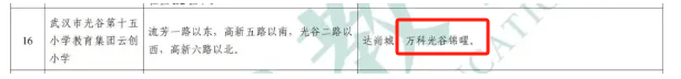 今年的官方划片文件中对光谷十五小教育集团云创小学对口的初中也做了预告。