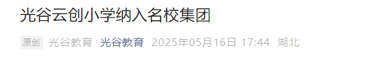 光谷教育官方消息显示光谷云创小学纳入光谷十五小教育集团,与光谷十五小、光谷十五小武软校区一个管理团队、一套管理机制、一套办学理念、一套课程体系。这就意味着万科光谷锦曜的优质小学配套真正兑现。