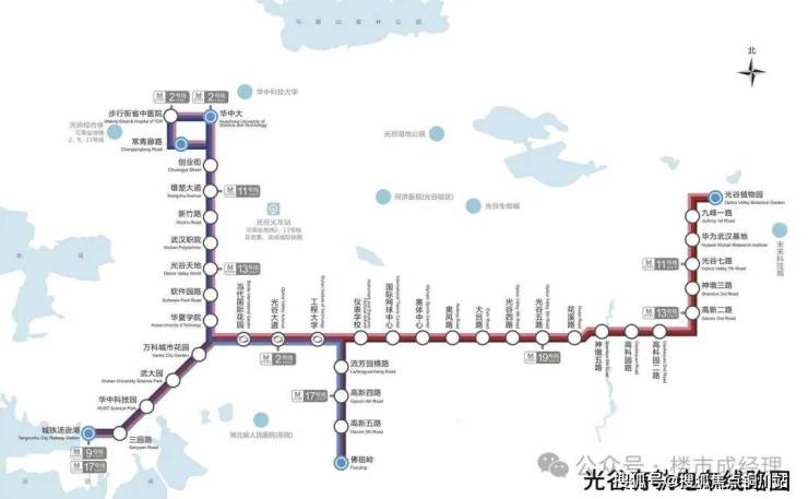三横三纵,纵向串联光谷金融港、软件园和光谷老城区;横向连接武昌、汉口等核芯地区及光谷东。项目临地铁2号线佛祖岭站和L1有轨电车高新五路站,可通达全城,交通便利。
