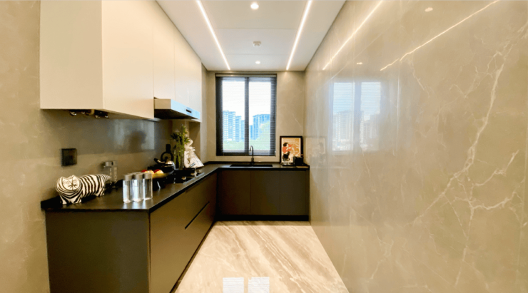 目前已公开的是建面约115㎡的样板间,一个是带软装的,一个是不带软装的,都是实体样板间,所见即所得,这一点很棒。另一个样板间计划月中开放。