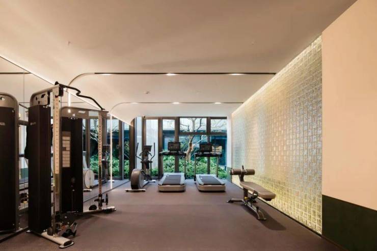 穿过大堂就是下沉式庭院,地下一层配备了约400㎡的会所空间,包括4点半学堂、健身房、茶室等。因项目本身体量也不大,各个会所空间设计得比较紧凑。