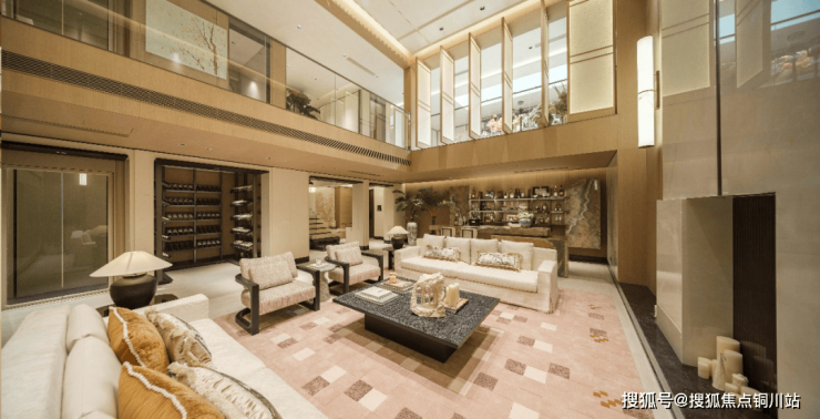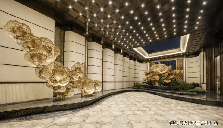 步入示范区,就像是开启了一场穿越古今的江南意境之旅。约50米宽、6米挑高的威然门庭,以泰山迎客松与鎏金铝板勾勒东方气韵。