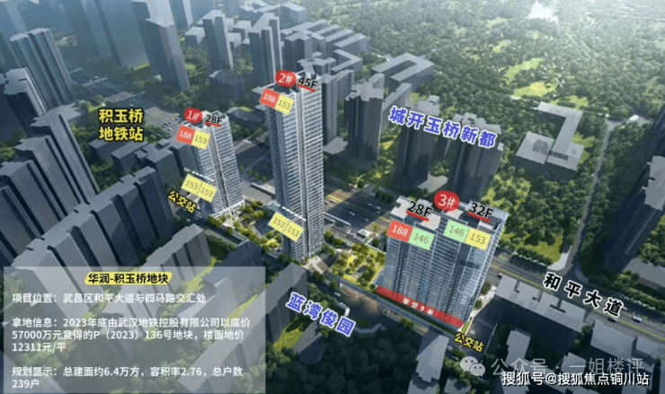 该项目即P(2023)136号地块,在2023年12月26日被武汉地铁控股有限公司以底价5.7亿获取,楼面价为12311元/平,之后传言引入华润代建。