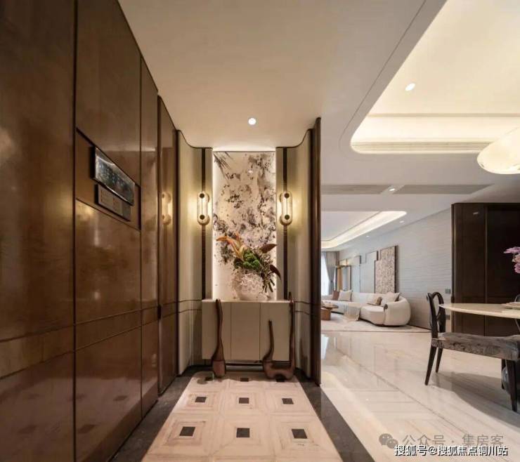 餐、客、厨通铺新欧亚木纹岩板,有着丝绸般流动的光华;主卧的编织风格背景墙,又像极了BV手袋的经典款。