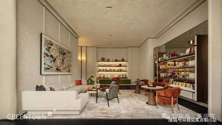 配套上,每幢住宅楼下都做了主题泛会所,未来仅供小区内业主使用,其中已经实景呈现的就有一个茶叙空间,还有个超级出圈的图书馆。