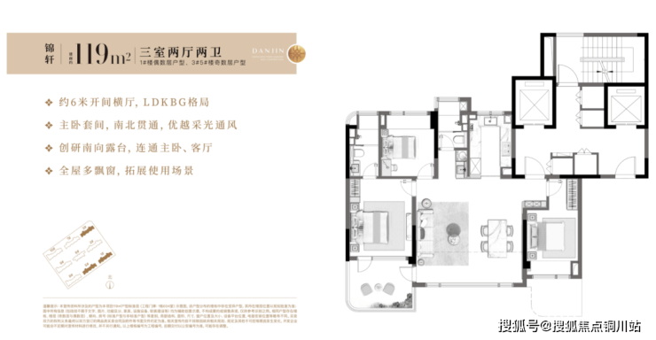 今天丹锦园公开119m²三房两卫户型样板间,为南部新城稀缺的小户型产品。