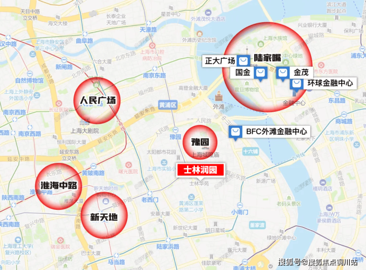 项目位于黄浦区核心,左拥新天地、淮海中路,右抱陆家嘴,北倚人广、外滩,南侧是一路连缀的豪宅区。
