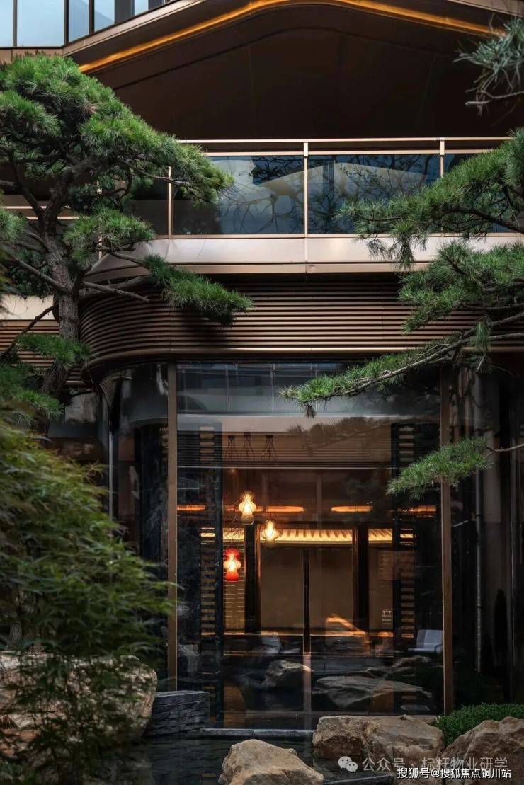 小区大门以黑松迎宾,通过院落景观实现归家心境的转换,营造出宁静而温馨的氛围。