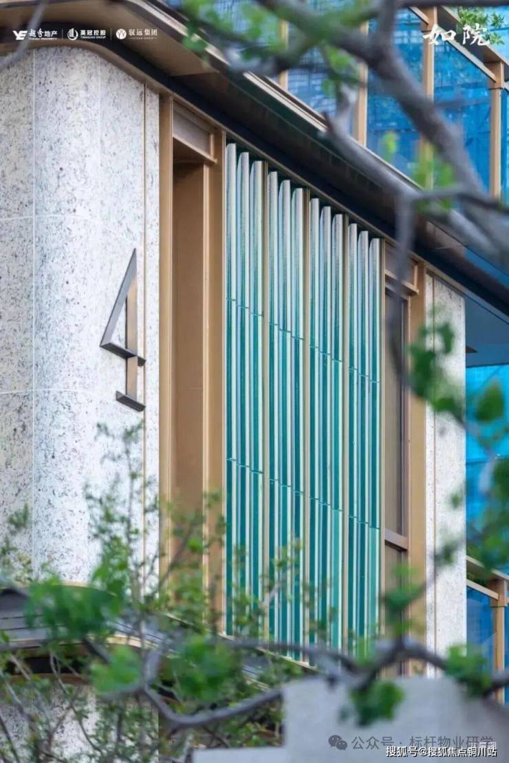 立面以玻璃幕墙和铝板为主,搭配陶板与石材,打造出眼前一亮的外观。色彩搭配上,延续东方建筑的典雅质朴,以暖色调与自然木色为主调,青绿色陶板作为点缀。