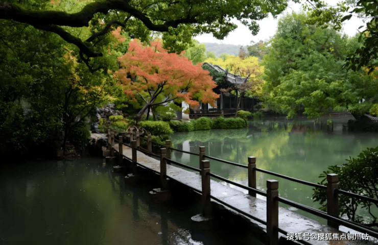 金山龙池,一池一桥一廊一月洞,颇为吸睛的超60米水月长廊,以现代金属工艺打造,池中几十年树龄的造型朴树、乌桕,园林内部更有多处采用珍贵原生态的太湖石,让园林呈现“虽由人作,宛自天开”的意境。