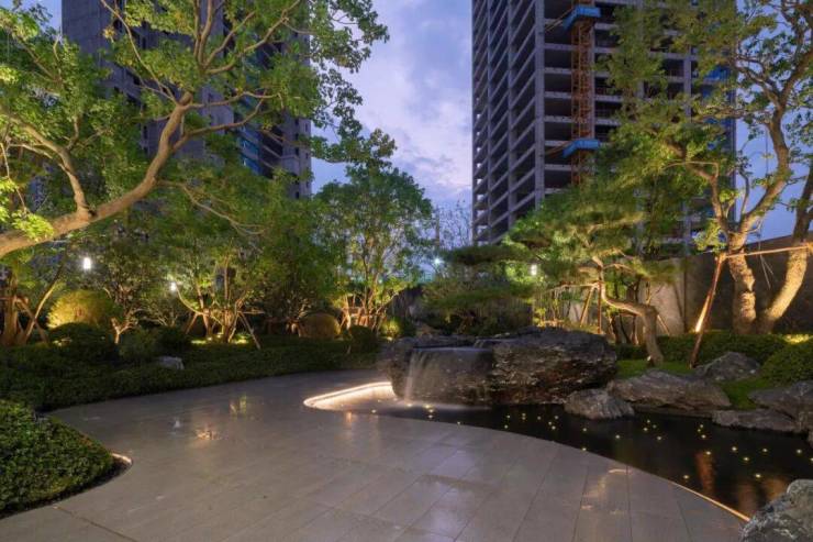 穿过门楼转入花园,景观置石与植物组团之间的穿插咬合为归家花园谱写了开篇。植物优雅伸展着枝丫述说着时光的故事,潺潺叠水让此静谧空间鲜活起来。在自然与艺术共存的空间里,找到无可复制的专属惬意时刻,创造一种富有格调的艺术生活场景。
