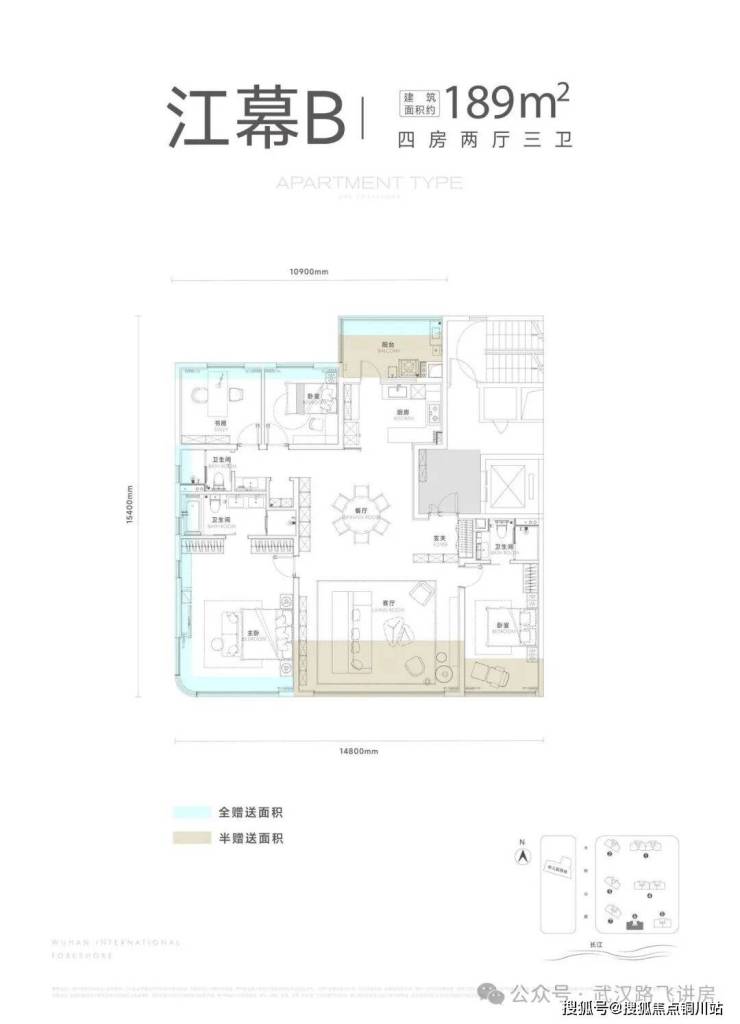 所有楼栋都是两梯两户设计,这意味着每户都有专属电梯前室可供使用;启元计划首推 3、6、7 号楼,其中 6、7 号楼均为头排观江楼栋,位置很有吸引力。三栋住宅的户型面积分别为 141、189、169 平,下面具体看看这三个户型: