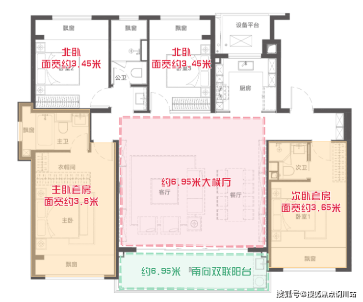 ●这个户型还有一大高超之处,就是几乎每一个功能间都带有飘窗,超大附送,得房率超出寻常,实际居住感受,堪比180㎡,激发生活品质的质变。