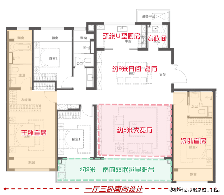 ●超大四开间朝南、约9米双开间阳台、约6米大宽厅,不论是空间还是尺度上都是气场全开;
