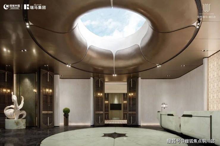 步入大堂内部,项目采用了青玉材质的地面与顶部百合花卉形态的天窗设计相呼应,这几天去看还有惊喜(一定要抬头看,年年有余),阳光透过天窗与水景,映射出“泉水、青玉、百合、锦鲤”融合的光影效果。